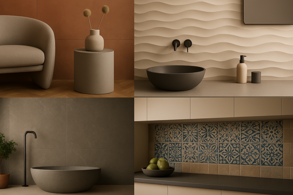 A burkolatok formavilága is változik: az egyenes vonalak egyeduralma megszűnik, helyüket lágyabb ívek, hullámok és organikus minták veszik át. Ezek a formák nemcsak vizuálisan frissek, hanem az enteriőrnek is dinamikusabb hatást kölcsönöznek. Az egyenes és szögletes burkolatok mellett egyre több helyen találkozhatunk lekerekített élekkel és hullámzó mintákkal, amelyek könnyedséget és harmóniát árasztanak.